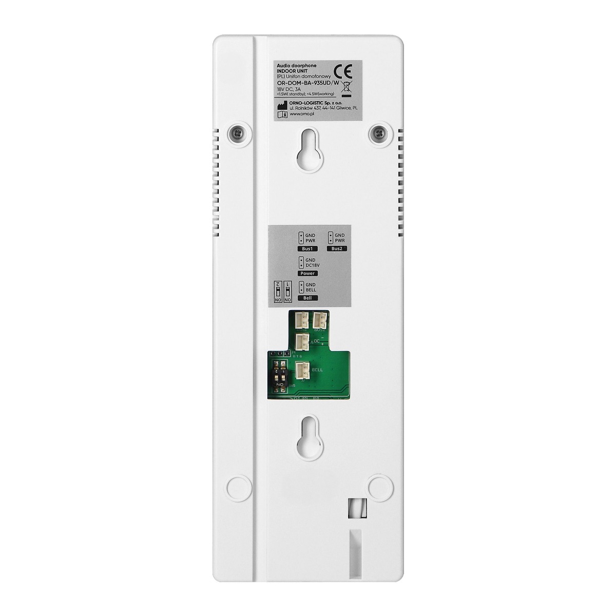 ORNO – 2 vezetékes, 1 lakásos, kézibeszélős kaputelefon szett, falon kívüli vandálbiztos kültéri egység, elektromos zár vezérlése, 13,56MHz Mifare RFID olvasó, 2db CON-TAF.MF Mifare kulcstartóval, beltéri egység méretei: 70x201x47mm, kültéri egység méreti: 53x138x28mm