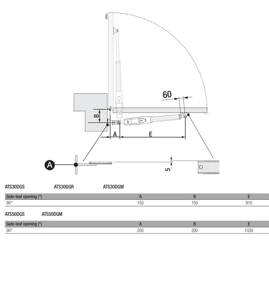A meghajtás rögzítésének lehetősége széles oszlopra, a kapuszárny pánttengelyének távolsága akár 200 mm is lehet.