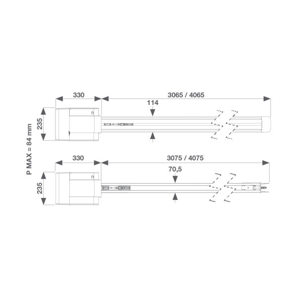 Szekcionált kapukhoz való készlet sín nélkül, 24 Vdc, 800 N erősség. Beépített vevőegység. Tartalmazza a két darab SUB44WR távirányítót.