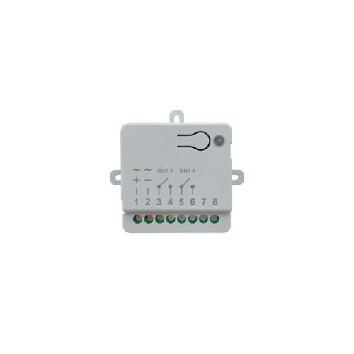 Kétcsatornás, 1000 férőhelyes Key vevőegység, ami fix és ugrókódos jelek fogadására is alkalmas 433,92 MHz-en. A relék akár 5A terhelhetőségére is alkalmasak.