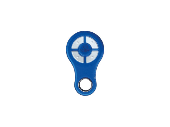 PRÉMIUM kivitel KEY 4 csatornás, ugrókódos távirányító. Kék vízálló házban, fehér nyomógombbal.
